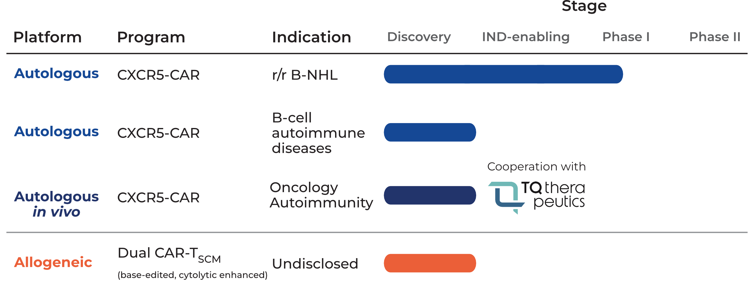 We are developing a cell therapy product candidate pipeline of first-in-class cellular immunotherapies for cancer and autoimmune diseases. Our proprietary portfolio is based on our ground breaking scientific achievements to address life-threatening diseases with unmet medical need and limited treatment options.